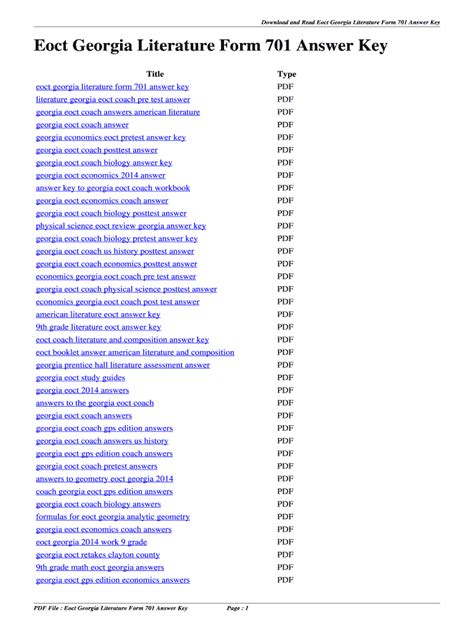 Read Eoct Georgia Literature Form 701 Answer Key Doc